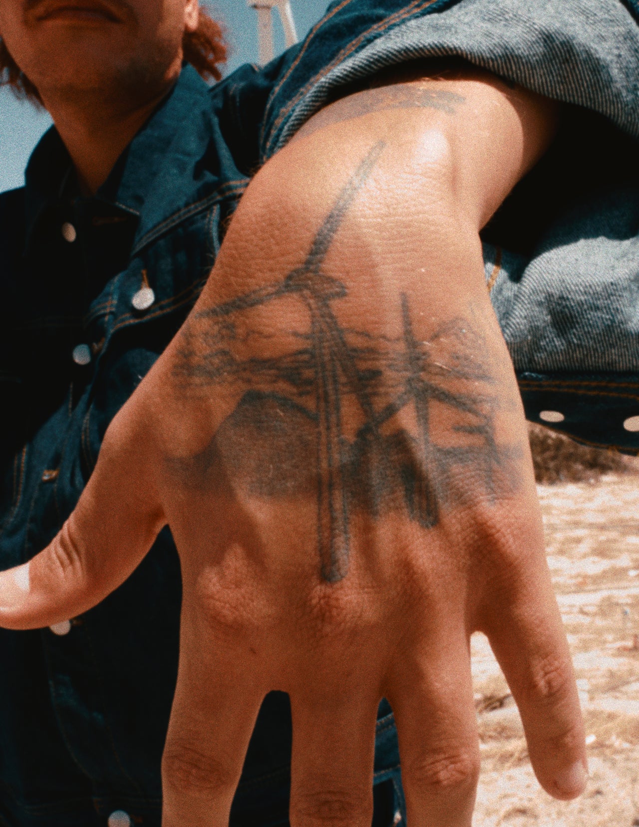 Ginger Boy is a proud Coachella Valley native who grew up repping OBEY. His windmill tattoo pays tribute to the “Power Up Windmill” t-shirt he got in 7th grade, featuring artwork from Shepard Fairey’s 2009 “Clean Energy for America.” Seeing a brand as iconic as OBEY celebrate his hometown’s beauty and its iconic windmills left a lasting impression — and inspired him to make the image permanent.
