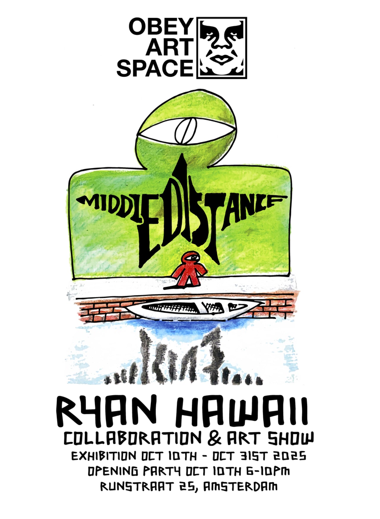 The exhibition reflects Hawaii’s long-standing connection to Amsterdam, which is also a “middle distance” between London and the Rhode Island streets were OBEY was born. The show serves as a the platform for Hawaii’s meeting of the minds with legendary founder Shepard Fairey.